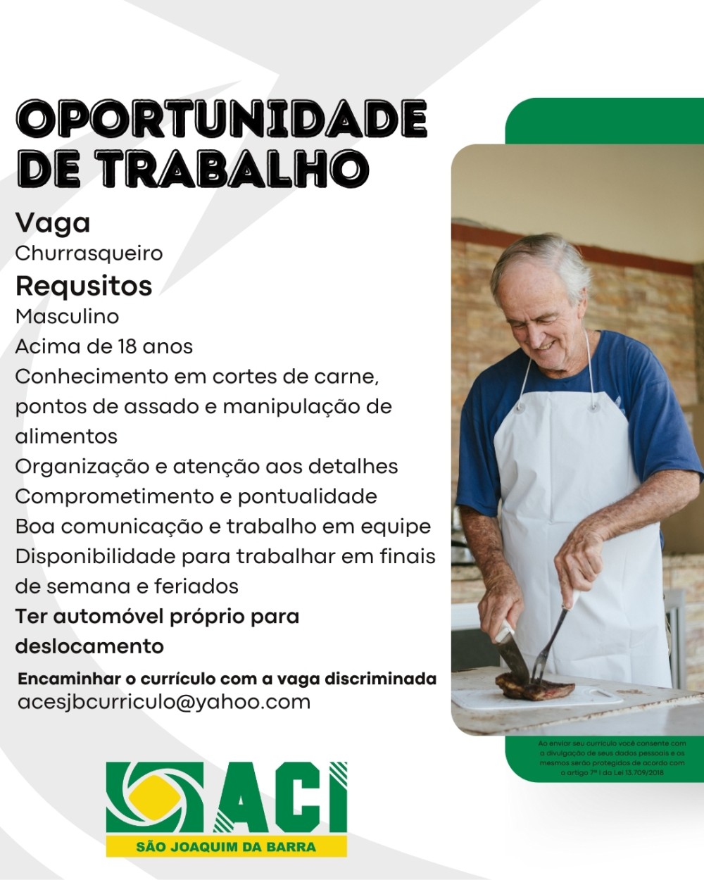 Vaga de Emprego: Churrasqueiro